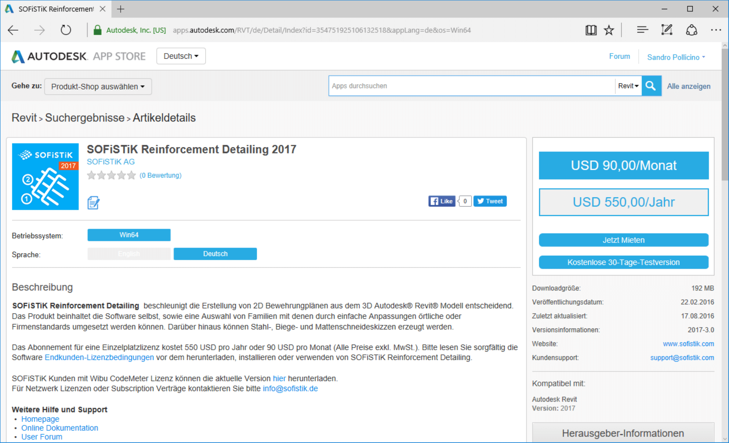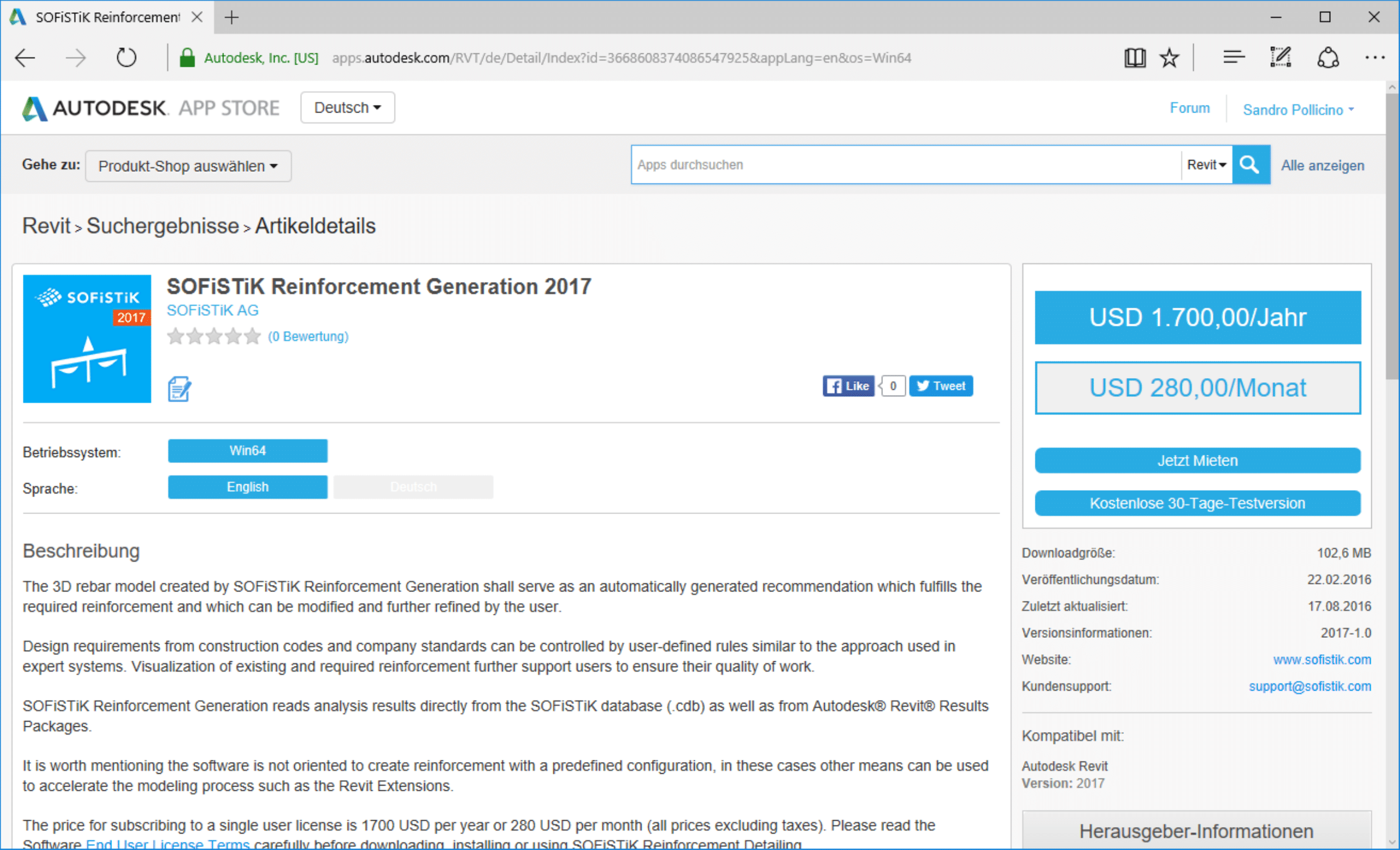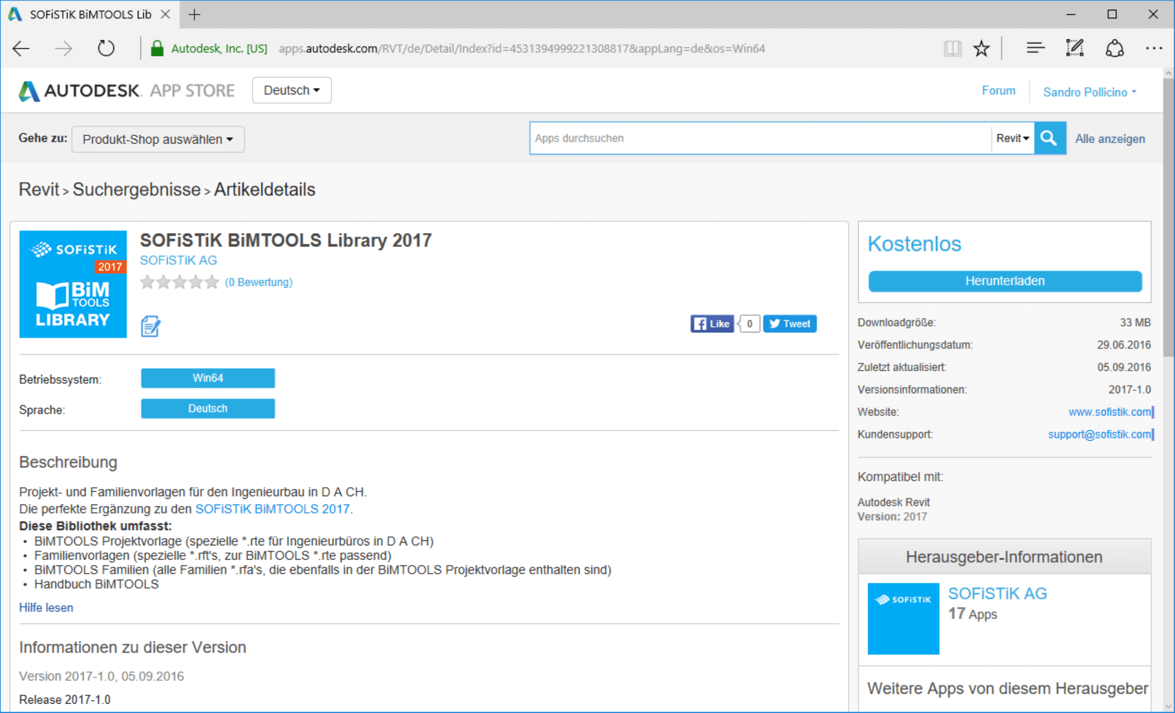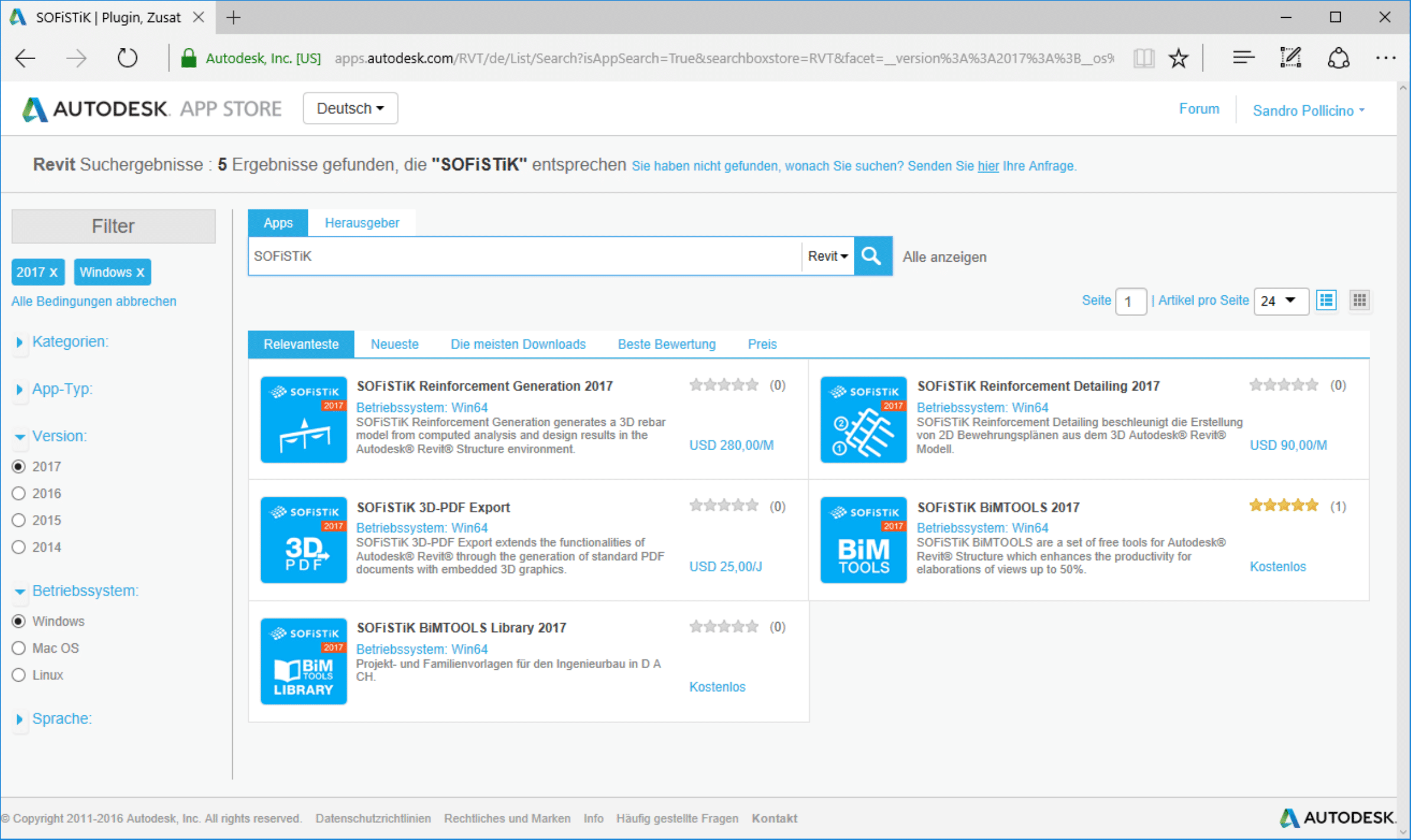 Um mit Autodesk Revit und SOFiSTiK Projekte bearbeiten zu können sollten mindestens folgende zwei Apps installiert werden. Die können kostenfrei aus dem Autodesk App Store geladen werden. Hierzu meldet man sich mit dem Autodesk Account im Autodesk App Store an. Als Suchbegriff verwendet man Sofistik. Aus den Fundstellen wählt man