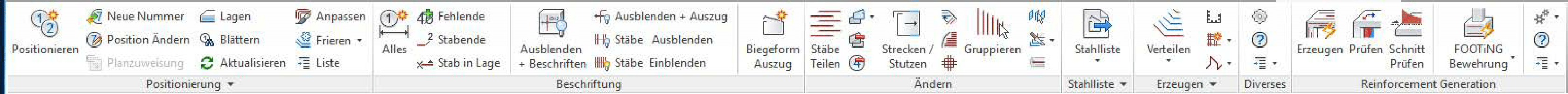 - Weitere Bewehrungsbefehle zur Eingabe, Bearbeitung und Darstellung.