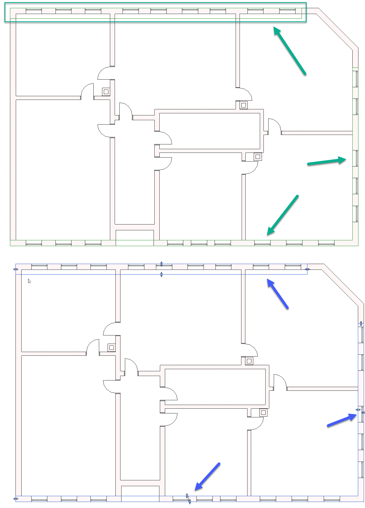 Die Umgrenzung wird mit einer grünen Linie angezeigt und kann wie eine Decke bearbeitet werden.